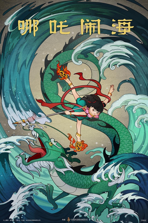 1978年,王树忱、严定宪、阿达三位导演领衔的摄制组成立,画家张仃担任美术设计,汇集上美影精锐创作班底,在15个月的时间里完成了这部手绘动画巨制。《哪吒闹海》取材于明代小说《封神演义》,但创作者并没有生硬照搬原著,而是根据当时的社会现实和动画电影题材的需要,对文本进行了合理改编。