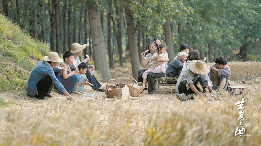 《生息之地》关注的,是处于代际变迁和现代化浪潮席卷的乡村,于四季的更替与生命的流转之间描绘出一幅充满诗意的“乡村画卷”。展现在镜头中的上世纪90年代的中原大地,凝聚着诗意乡土的美学风格。乡村的自然景观与人文日常被完美融合,春日清明的迁坟仪式、夏日金黄的滚滚麦浪、秋日里的新型秋收、冬日里的皑皑白雪,以四季更迭的诗意隐喻了乡村的生息与变迁。