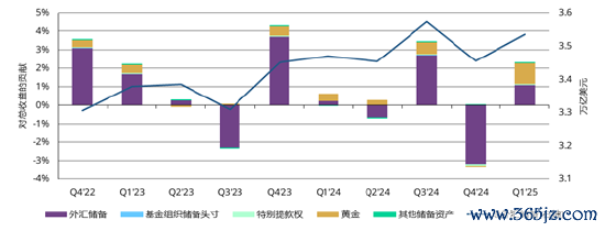 * 截至2025年一季度。回报构成分析=外汇储备总额占比*季度回报率。